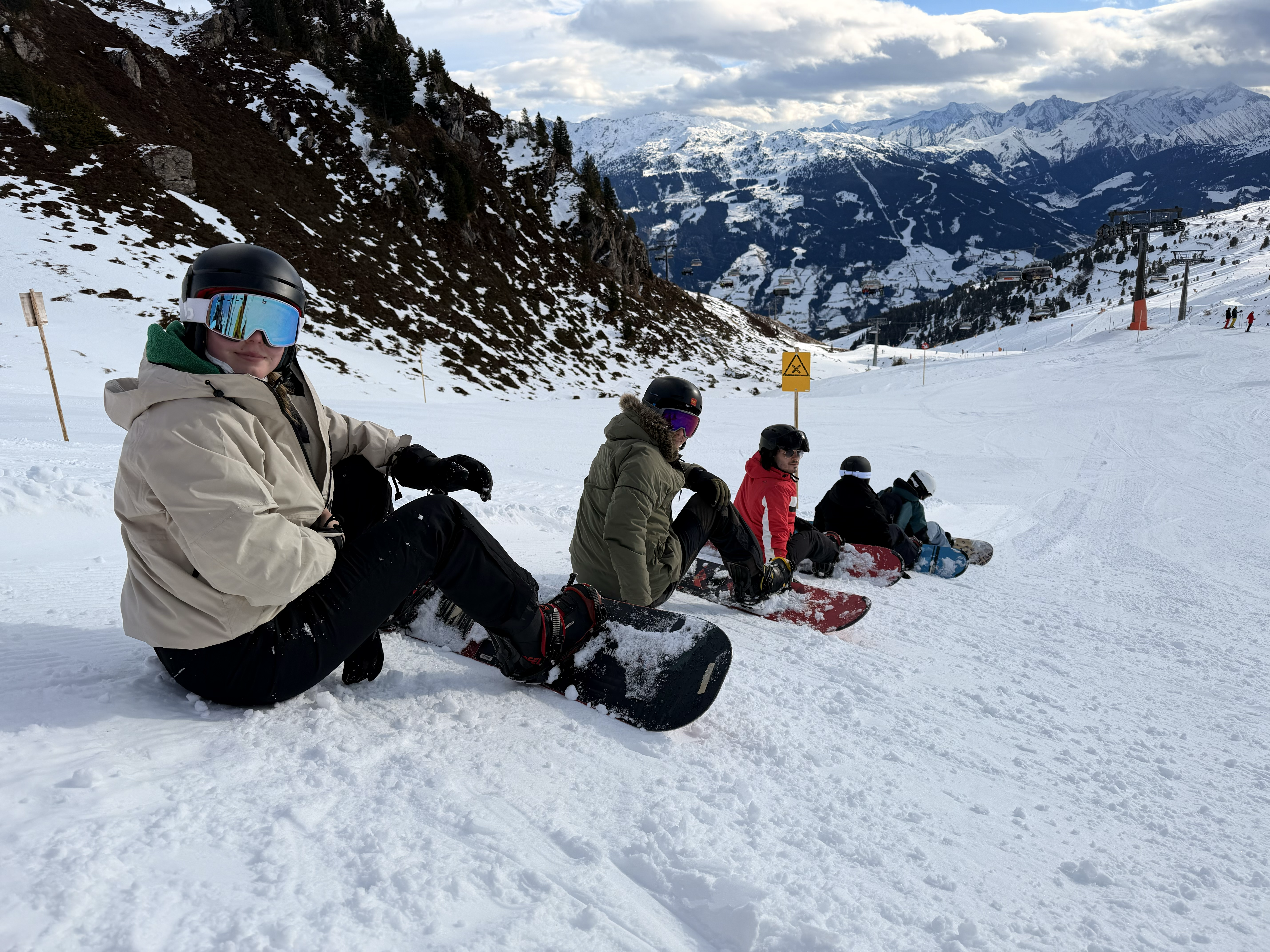 Das Wetter zeigte sich von seiner typischen Januar-Seite: mal wechselhaft, mal freundlich – aber immer wieder mit frischem Neuschnee, der für beste Pistenbedingungen sorgte. An sonnigen Tagen bot sich zudem ein beeindruckendes Alpenpanorama, das viele Schüler:innen für Fotos und kurze Pausen im Liegestuhl nutzten.